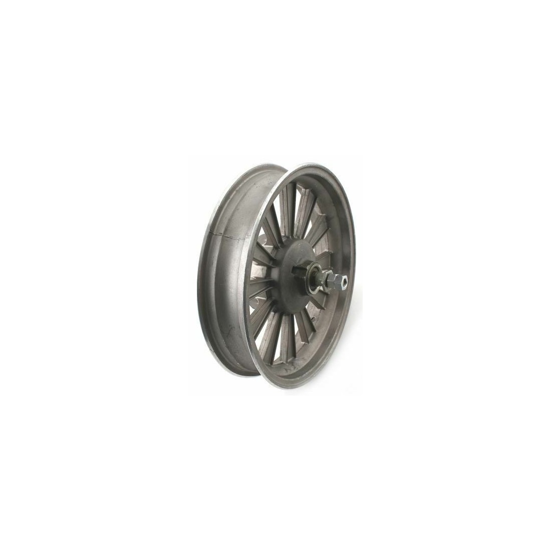 (R.8362) Vendo cerchio anteriore nuovo vintage a 12 razze in lega 2.10 x 10 di colore grigio marca Bernardi senza piatto porta ceppi , per misure vedere foto