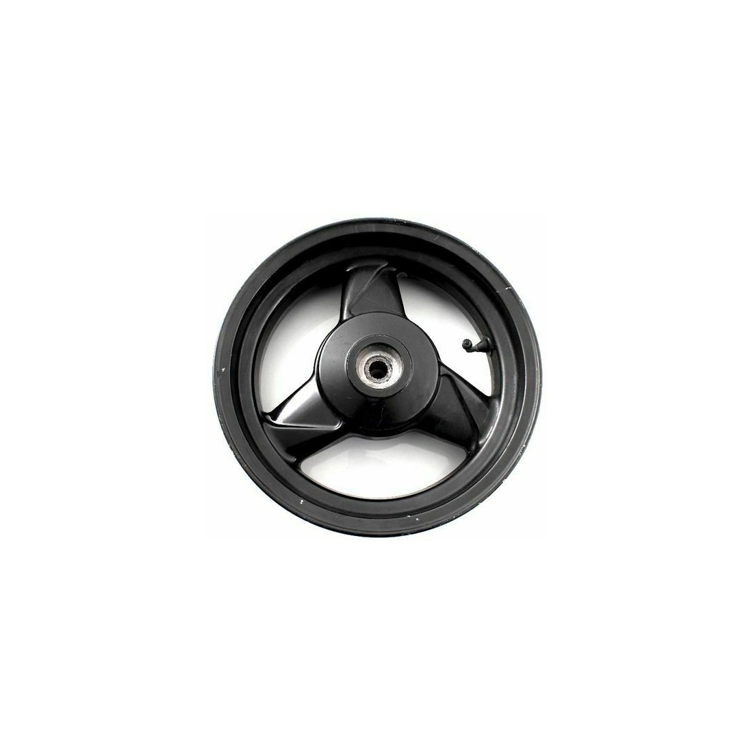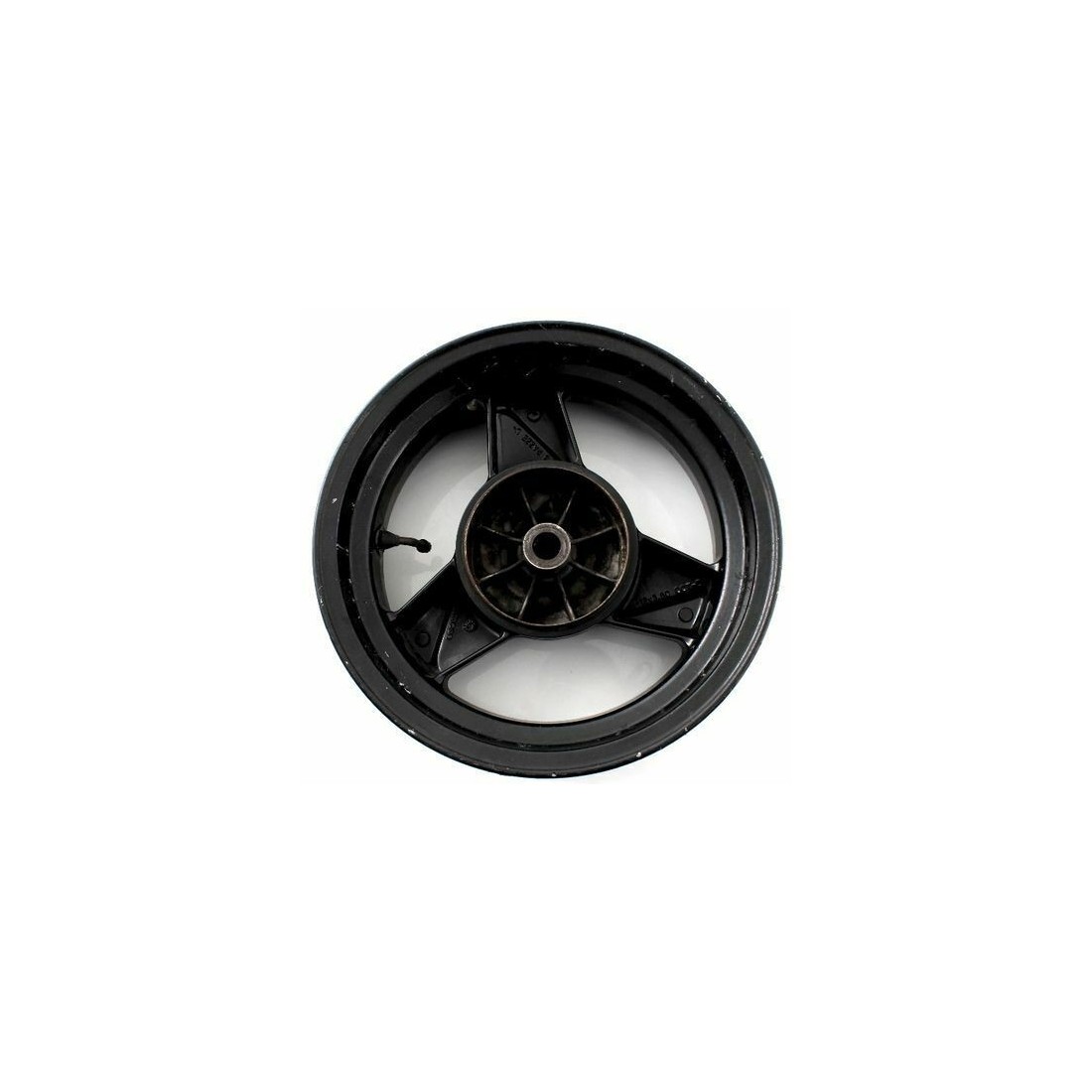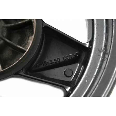 (R.4345) Vendo cerchione posteriore in lega usato per Atala Hacker per freno a tamburo con interno perfetto come nuovo a tre razze di colore nero marchiato Grimeca 12 x 3.50