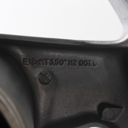(R.13318) Vendo cerchio in lega posteriore con freno a tamburo usato per Peugeot Speedfight LC 50 cc dal 1998 marchiato Leleu 12 X 3.50 di colore argento con diametro tamburo 110 mm , per misure vedere foto