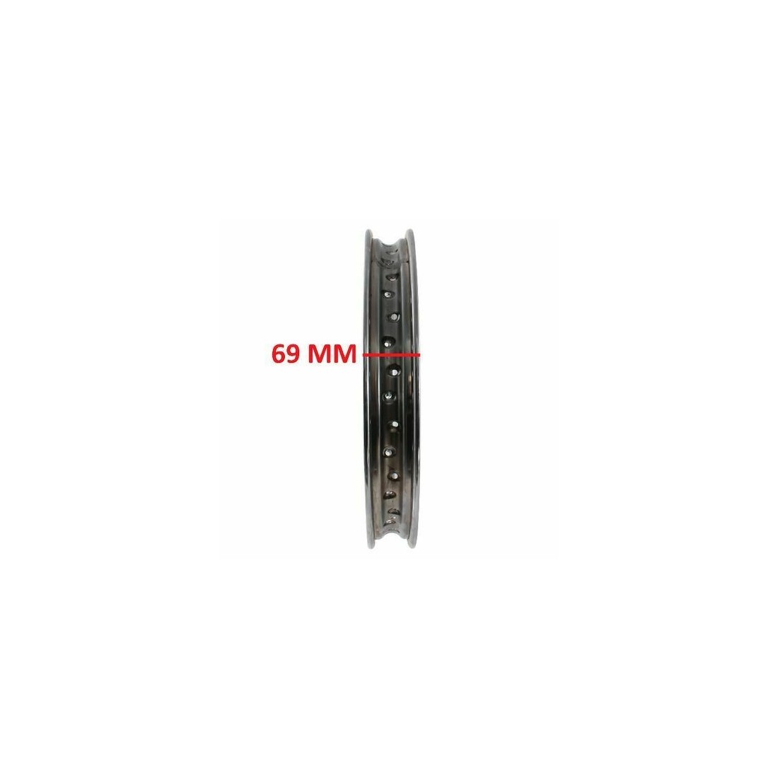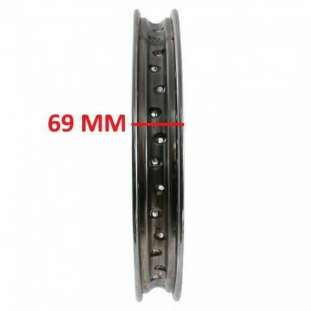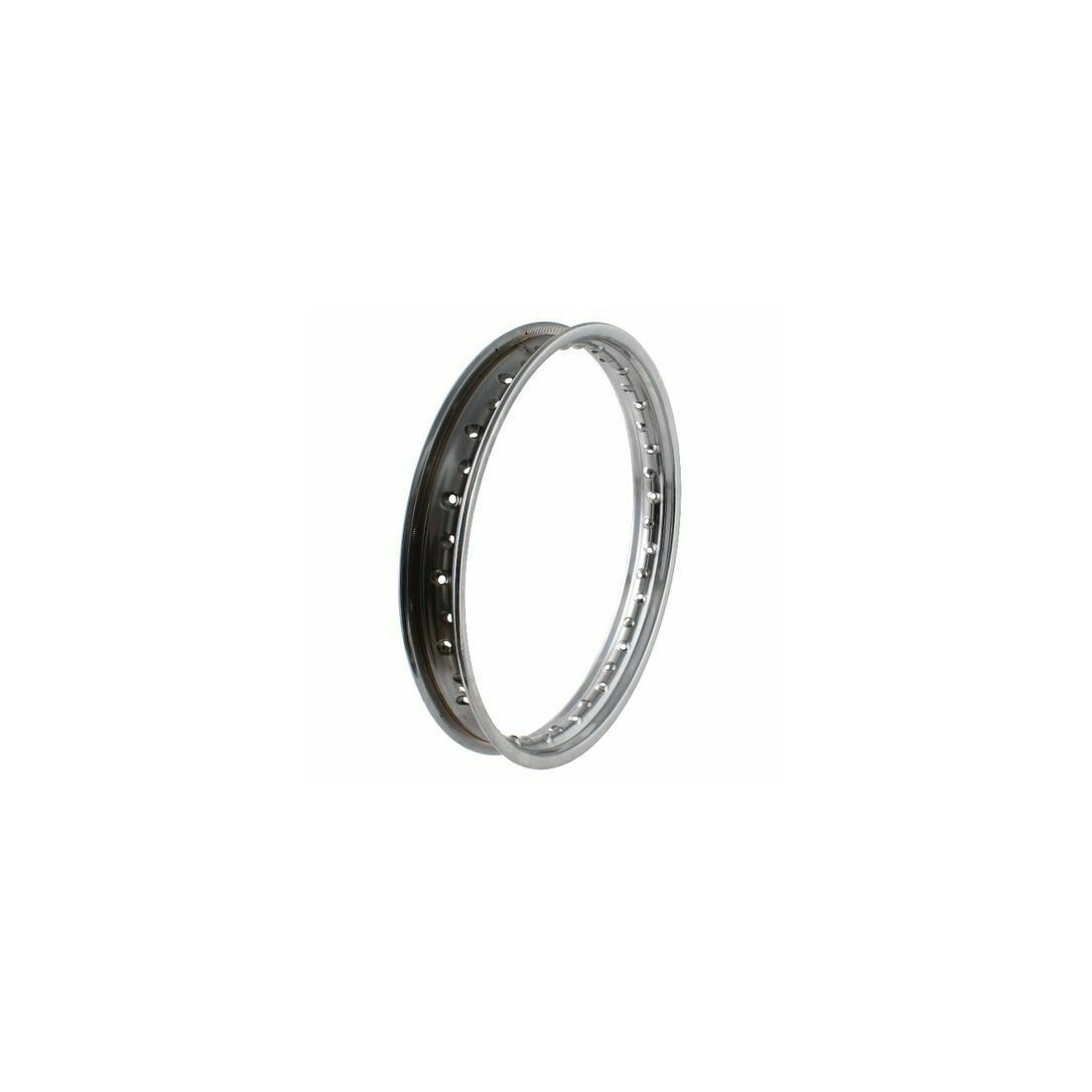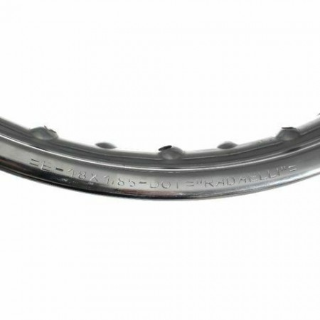 (R.12225) Vendo cerchione in acciaio cromato da 18 x 1.85 con 40 fori nuovo per motocicli vari epoca marchiato E 18 x 1.85 DOT Radaelli 1199 con larghezza 69 mm, il prezzo si intende per singolo pezzo, per misure vedere foto