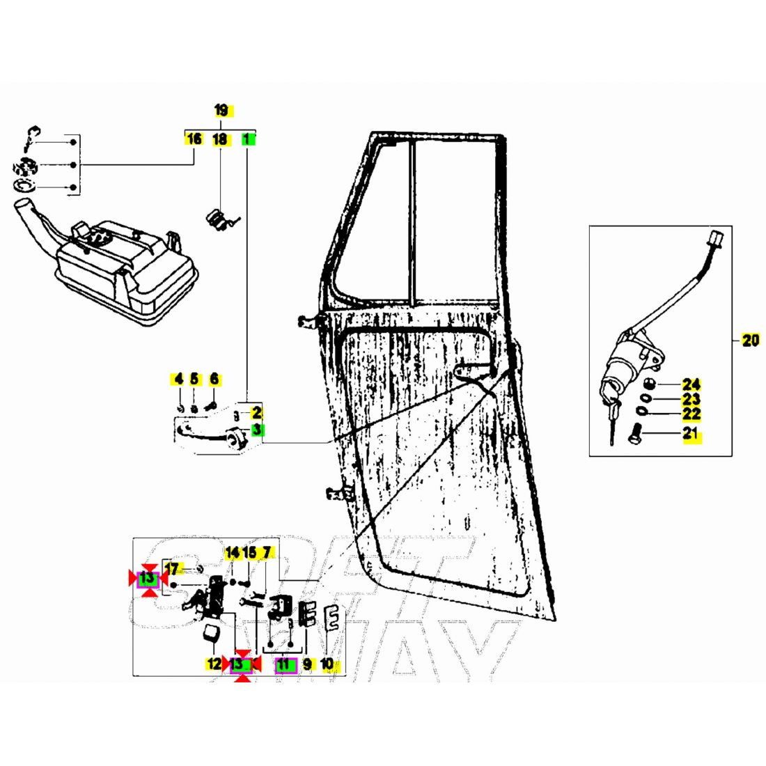 (R.23763) Vendo chiusura dello sportello nuova per Piaggio Ape Classic 400 dal 2014 - Ape MP P501 e P601 220 dal 1978 - Ape MP601 Classic 420 dal 2006 , originale Piaggio con codice 182660 , per applicazioni e spaccato vedere foto