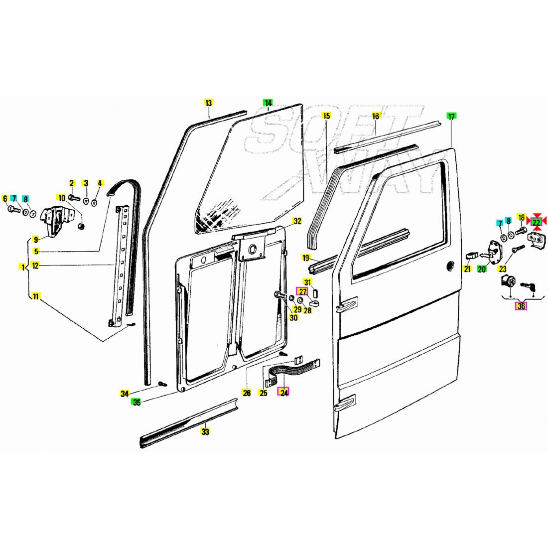 (R.23918) Vendo blocchetto della serratura della porta destra nuovo per Piaggio Ape TM P602 P703 P703V FL2 220 e 420 dal 1982 , originale Piaggio con codice 213182 , per applicazioni e spaccato vedere foto