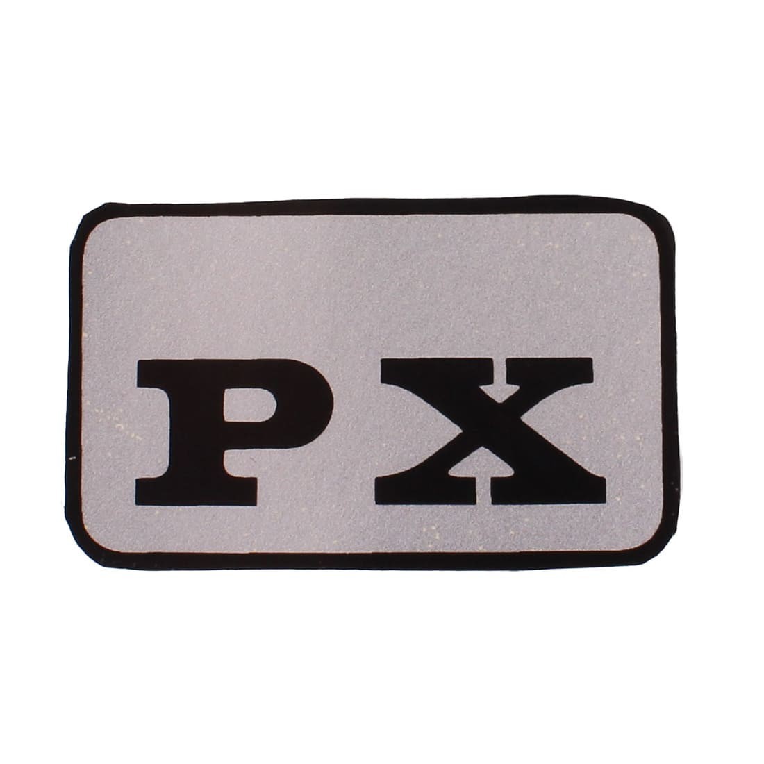 (R.19690) Vendo targhetta adesiva parafango posteriore nuova per Piaggio Ciao PX originale Piaggio no concorrenza con  codice 190929 con scritta e bordi neri e sfondo argento