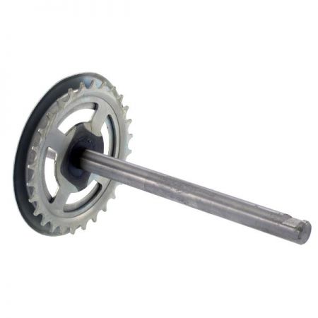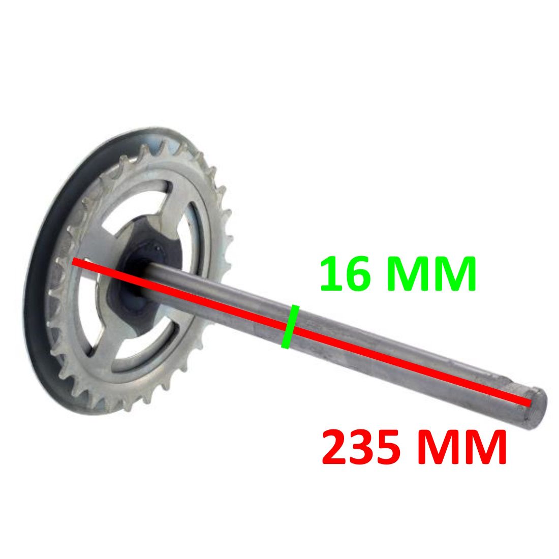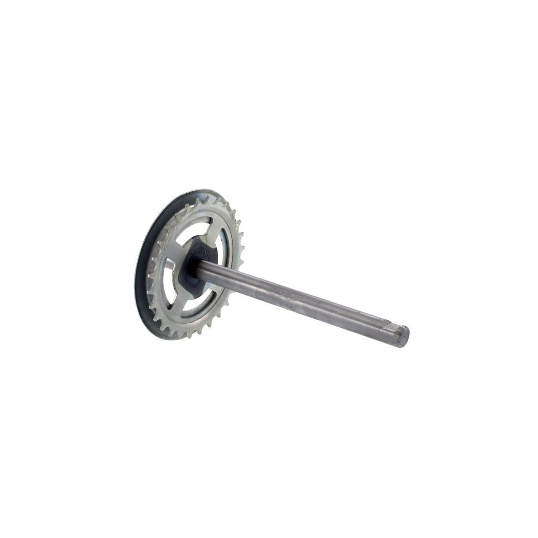 (R.13732) Vendo albero pedaliera porta pedivelle con corona da 28 denti nuovo per Piaggio Ciao PX dal 1980 - Bravo 3 marce dal 1987 simile a codice Piaggio 188073 e con lunghezza 235 mm e diametro 16 mm , per misure vedere foto