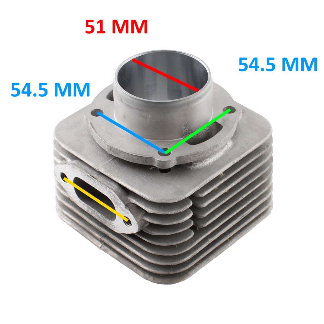 (R.15358) Vendo cilindro gruppo termico 2 travasi con diametro canna 51 mm senza pistone nuovo per Ducati motopompa o motozappa con codice 022417013 , per misure vedere foto