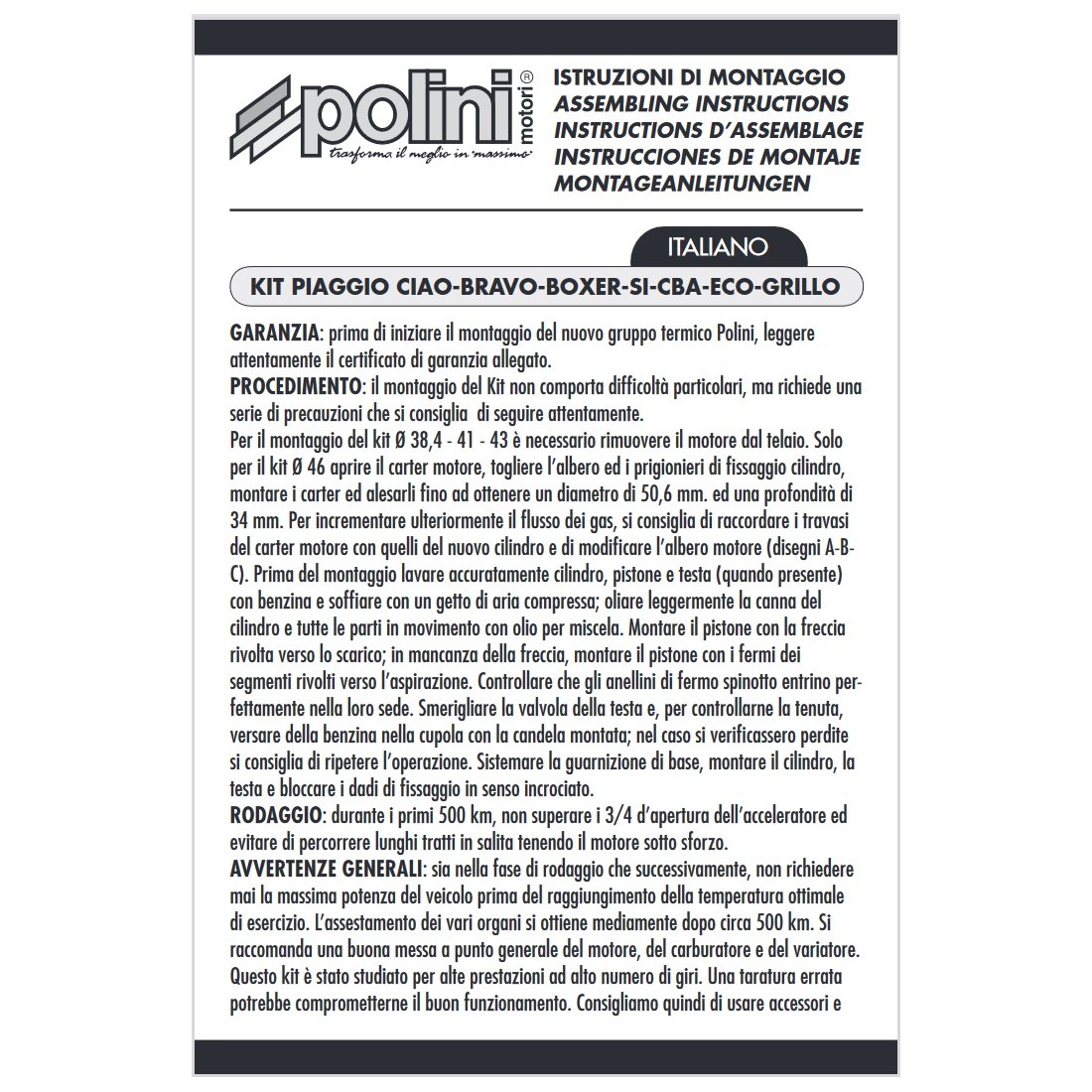 Cilindro Ciao Polini da 46 sp. 12 -...