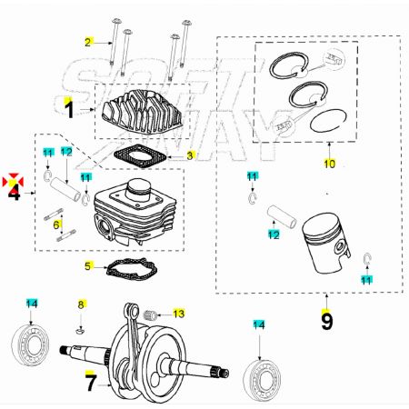 (R.21832) Vendo cilindro e pistone nuovi per Peugeot Ludix 50 cc - Vivacity 3 ad aria simile a codice Peugeot 764131 , per applicazioni e spaccato vedere foto