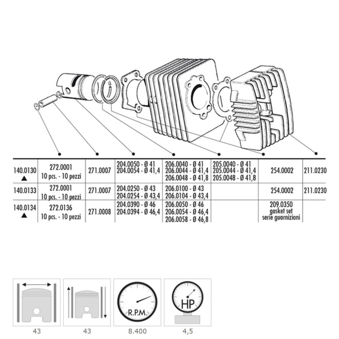 Cilindro Polini da 43 SI Bravo Gilera Eco e CBA - 1400133