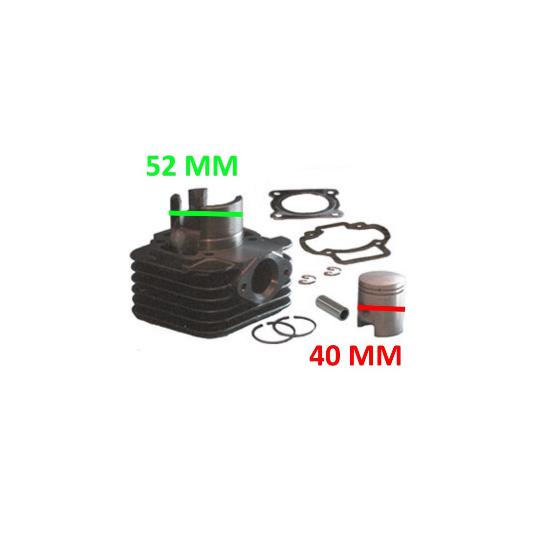 (R.19710) Vendo cilindro tipo originale con pistone da 40 mm nuovo per Piaggio 50 cc. ad aria vari tipo Zip e Typhoon con diametro esterno canna 52 mm , il prezzo si intende per l'intero kit , per misure vedere foto