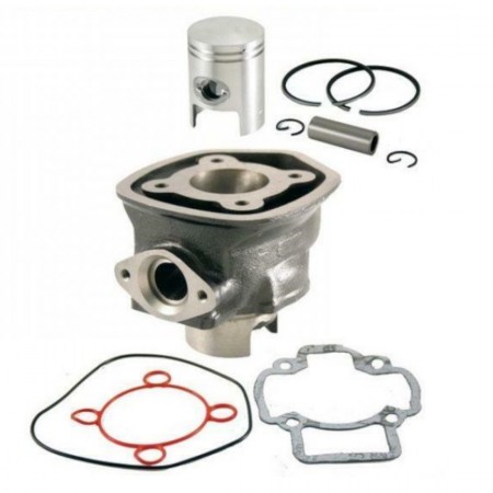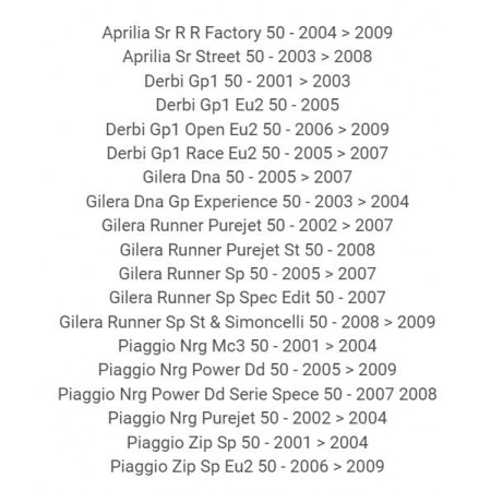 (R.20050) Vendo cilindro a liquido con pistone nuovo per scooter con motore Piaggio 50 cc dal 2000 con testa a punta tipo Piaggio NRG e Zip - Gilera Runner e DNA - Derbi GP1 - Aprilia SR Street e Factory con codice 100080090 , il prezzo si intende per l'intero kit , per applicazioni vedere foto