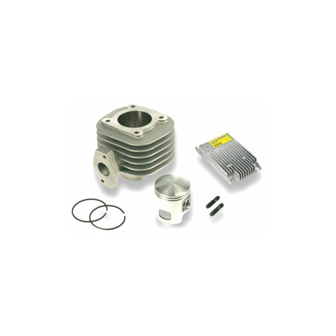 (R.7670) Vendo modifica cilindro in alluminio nuova con codice Malossi 3112054 per Aprilia Scarabeo Ditech 50 cc 2 tempi raffreddato ad aria , completo di pistone diametro 47 con spinotto da 12 e due segmenti semitrapezoidali , centralina elettronica , 2 prigionieri , seeger , il prezzo si intende per singolo kit