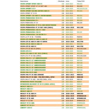 (R.23989) Vendo cinghia di distribuzione nuova per Piaggio Vespa Sprint Sport 150 - Vespa Primavera 150 - Vespa GTS 125 e 150 - Vespa 946 125 e 150 - Medley 125 e 150 - Liberty 150 , simile a codice Piaggio 1A011455 , per applicazioni vedere foto