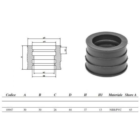 (R.21761) Vendo manicotto aspirazione nuovo a una gola in gomma per scooter elaborati con collettore Malossi con diametro interno da 30 mm da entrambi i lati , per misure vedere foto