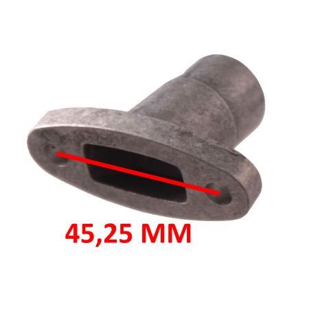 (R.22157) Vendo collettore aspirazione nuovo con foro aspirazione rettangolare tipo FBM Minarelli P4 con diametro esterno imbocco carburatore da 24 mm , interasse fori di fissaggio da 45,25 mm e altezza da 51 mm , per misure vedere foto