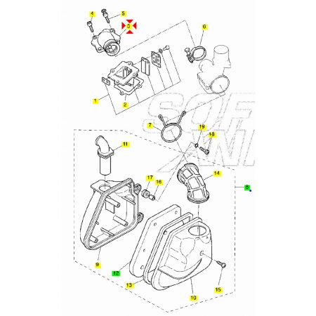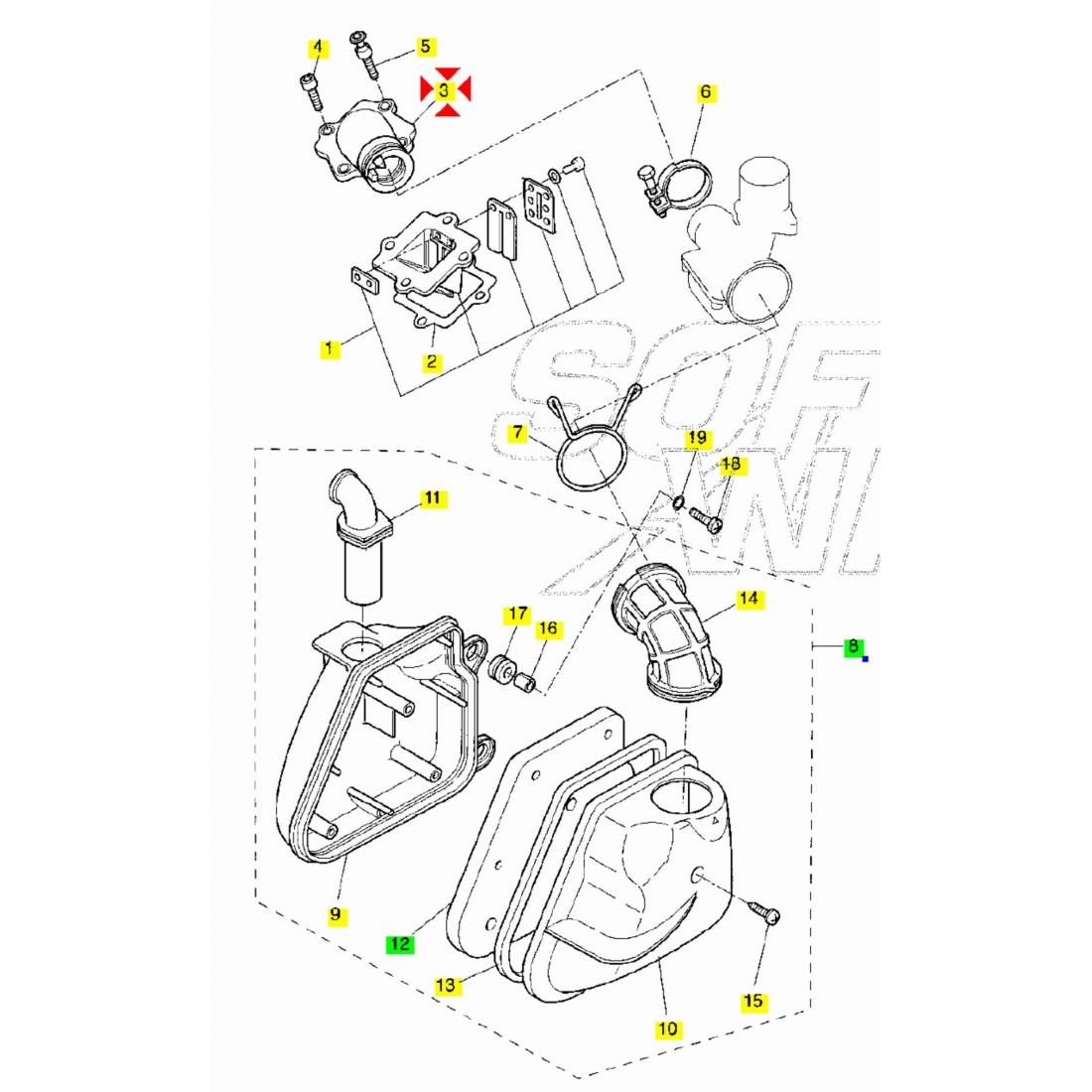 (R.23925) Vendo collettore d'aspirazione nuovo per motori Minarelli FBM orizzontale cilindrata 50 cc. tipo Aprilia Area 51 - Gulliver - SR - Scarabeo - Rally , simile a codice Aprilia AP8206466 , Benelli Naked - Pepe - Pepe LX , simile a codice Benelli R18340051A0 , Malaguti Centro - Ciak - Ciak Master - F10 Restyling - F12 Phantom Restyling - F15 Fire Fox Restyling - Grizzly , simile a codice Malaguti 76004500 , MBK Mach G - Evolis - Flipper - Nitro - Ovetto , Yamaha CS Jog R - Aerox - Why - Neo's , simile a codice Yamaha 4CUE35552000 , per applicazioni e spaccato vedere foto