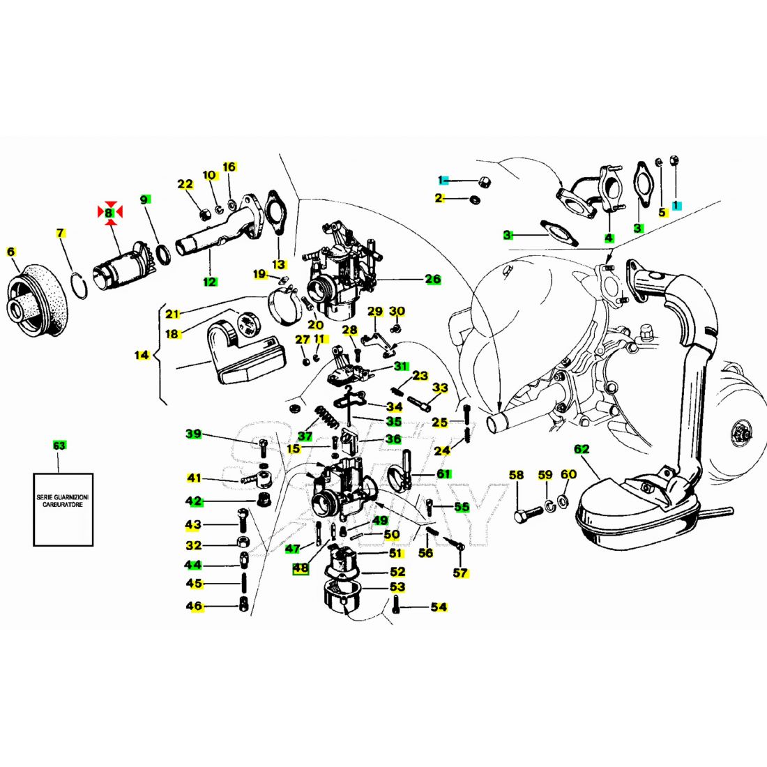 (R.24296) Vendo bocchettone del collettore d'aspirazione nuovo per Piaggio Vespa FL FL2 HP 50 dal 1990 - Vespa N 50 dal 1989 - Vespa PK 50 dal 1982 - Vespa PK XL Rush 50 dal 1985 , simile a codice Piaggio 2451974 , per carburatori 16 - 10 , per applicazioni e spaccato vedere foto