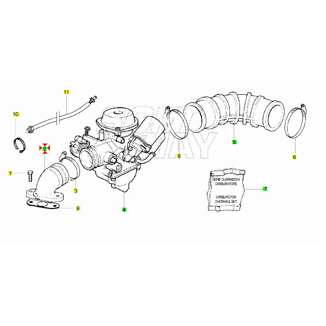 (R.25515) Vendo collettore di aspirazione nuovo simile a codice Piaggio 485587 per scooter Piaggio 125 e 150 tipo Vespa ET4 Motore Leader 125 e 150 - Zip 125 - Vespa ET4 125 - Skipper 4t 125 - Liberty 125 , per applicazioni e spaccato vedere foto