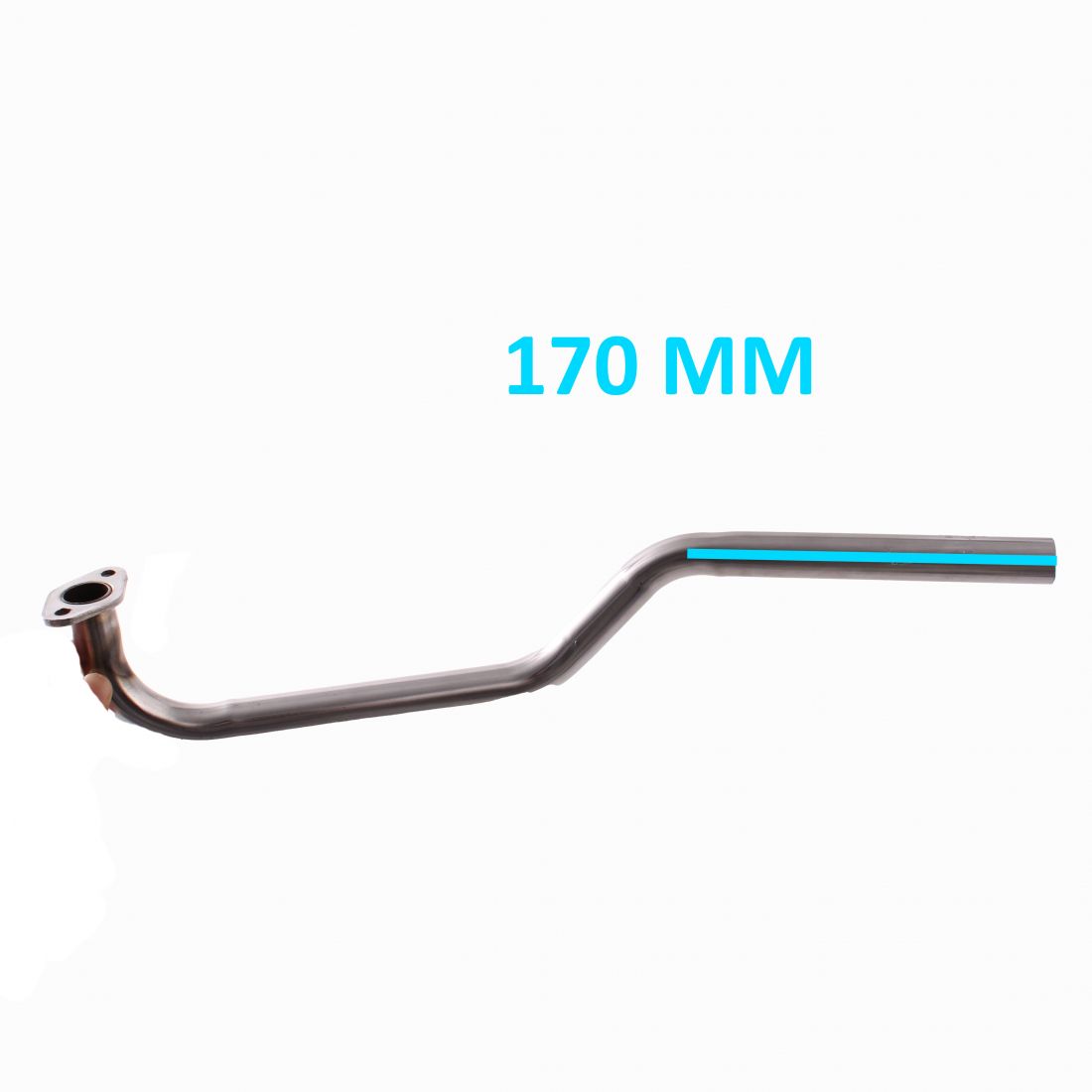 (R. 25092) Vendo collettore di scarico nuovo per motori Franco Morini M1 con interasse fori di fissaggio da 38 mm , diametro del tubo da 22 mm e lunghezza finale da 170 mm , per misure vedere foto