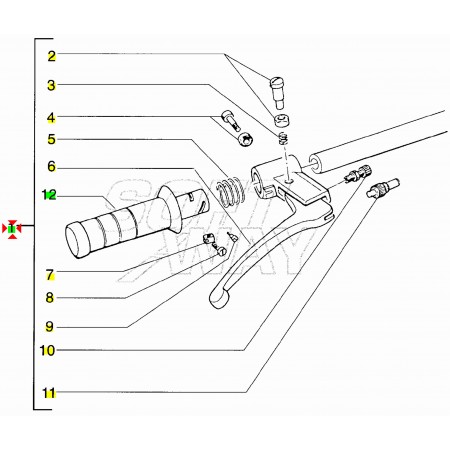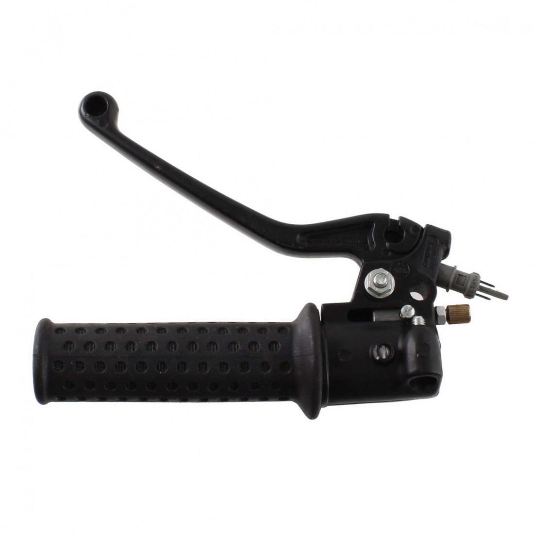 (R.15690) Vendo comando acceleratore con leva freno angolata destro nuovo per Piaggio NRG - NNT - Gilera Storm - Typhoon - Typhoon X - Typhoon XR 50 cc dal 1994 con codice Piaggio 564703 e 2151.03 , manopola in gomma e leva freno in ferro marchiata Domino , per applicazioni ed esploso vedere foto