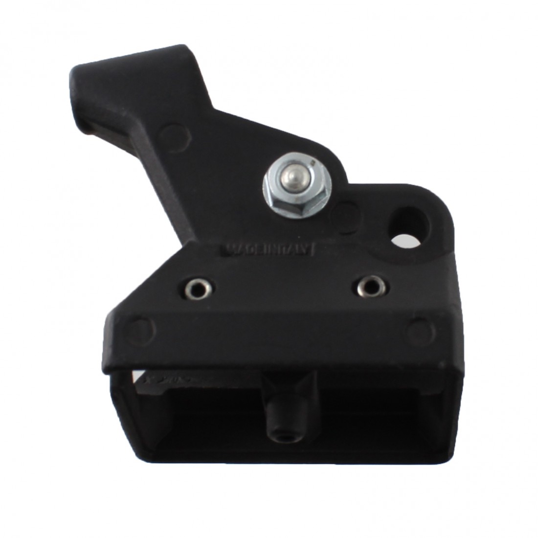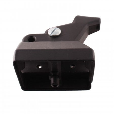 (R.16206) Vendo supporto leva sinistro nuovo con scanso rettangolare per commutatore fari per ciclomotori vari epoca tipo Tuboni marchiato Domino di colore nero con misure scanso 58,5 x 45,5 mm , per misure vedere foto