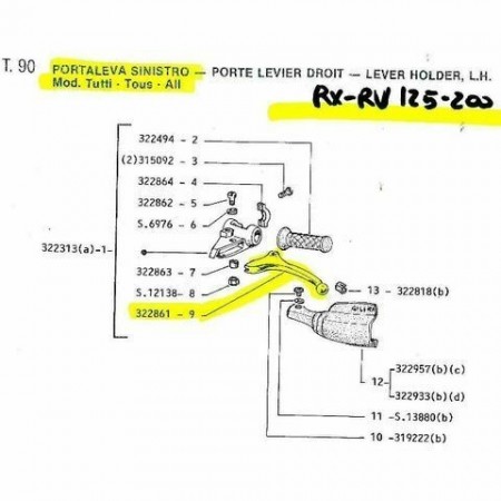 (R.245) Vendo maniglia frizione sinistra nuova per Gilera RX - RV 125 e 200 cc marca Tommaselli con codice Gilera 322861