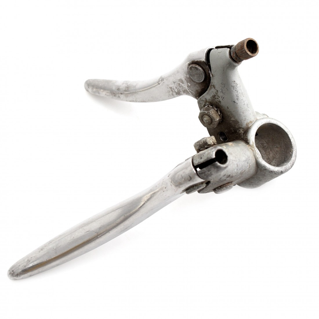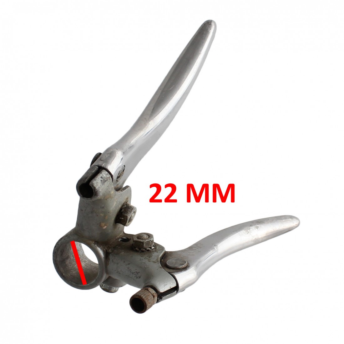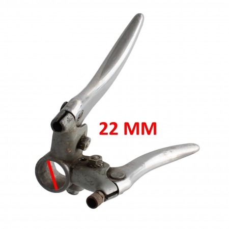 (R.14381) Vendo portaleva lato sinistro con leva freno e alzavalvola usato per ciclomotori vari epoca di colore grigio con diametro foro manubrio 22 mm , per misure vedere foto