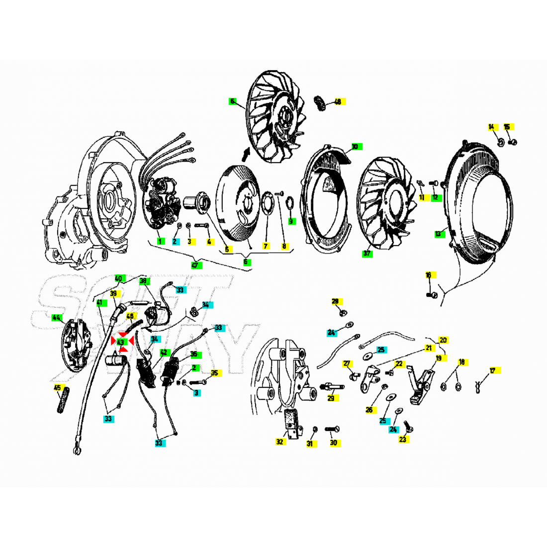 (R.20614) Vendo condensatore con doppio filo per Piaggio Vespa Sprint - TS - GT - GTR - Super simile a codice Piaggio 155973 , per applicazioni e spaccato vedere foto