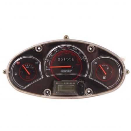 (R.24210) Vendo contachilometri usato per Keeway F - Act Evo Sport 50 dal 2011 , con 5155 chilometri segnati e attacco a 9 pin , scala da 0 a 80 Km/h con sfondo nero , numeri di colore bianco e lancette di colore rosso , contachilometri fermo a 51557 con orologio testato funzionante