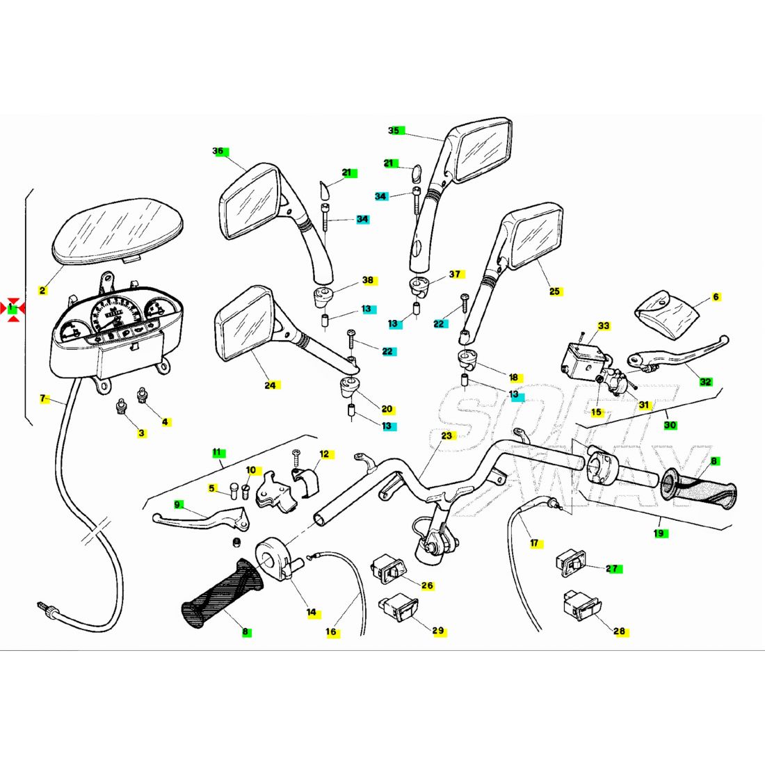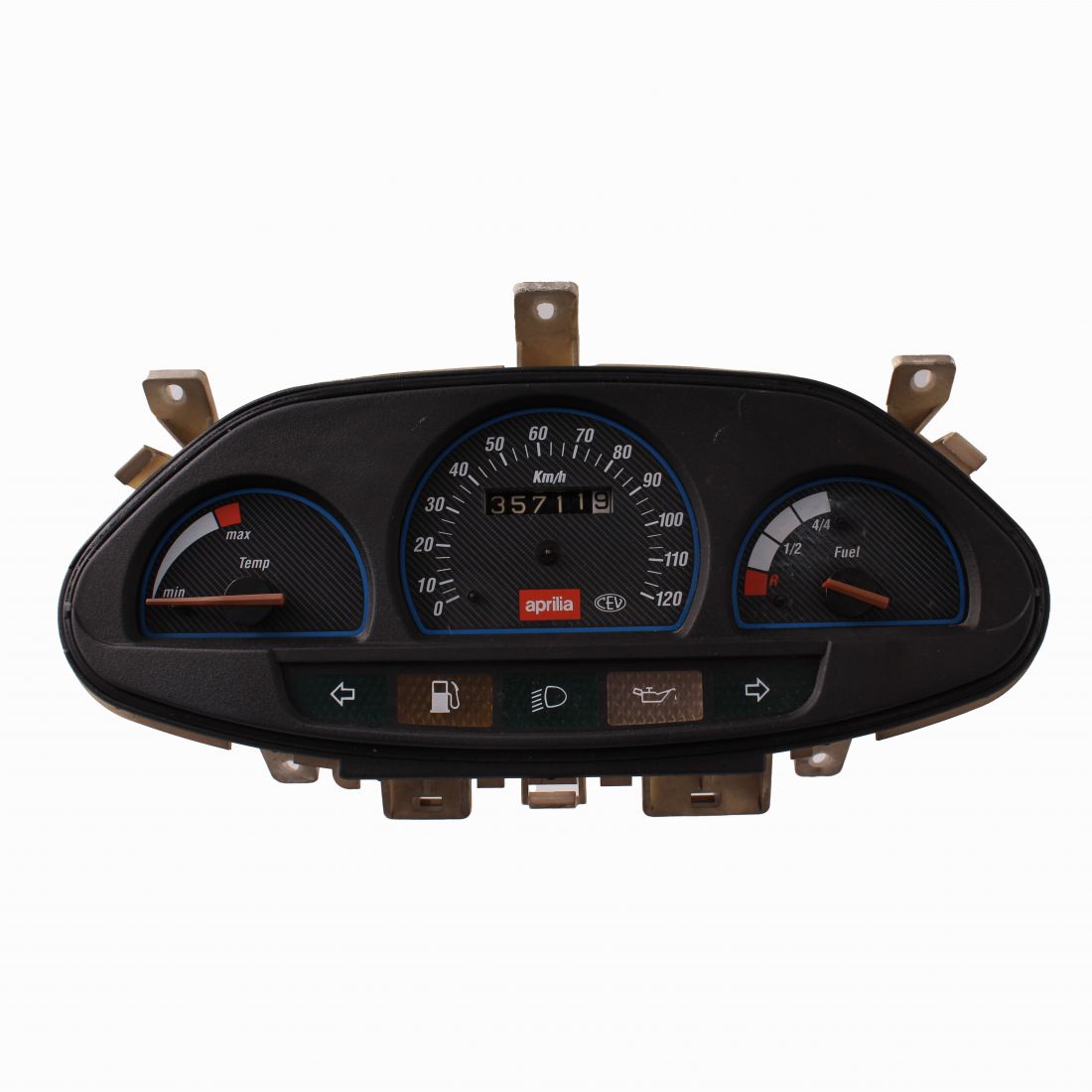 (R. 25251) Vendo gruppo strumenti cruscotto completo usato funzionante ma con lancetta centrale e del carburante mancanti e senza vetro superiore per Aprilia SR raffreddamento a liquido 50 cc con codice Aprilia AP8212842 , per applicazioni e spaccato vedere foto