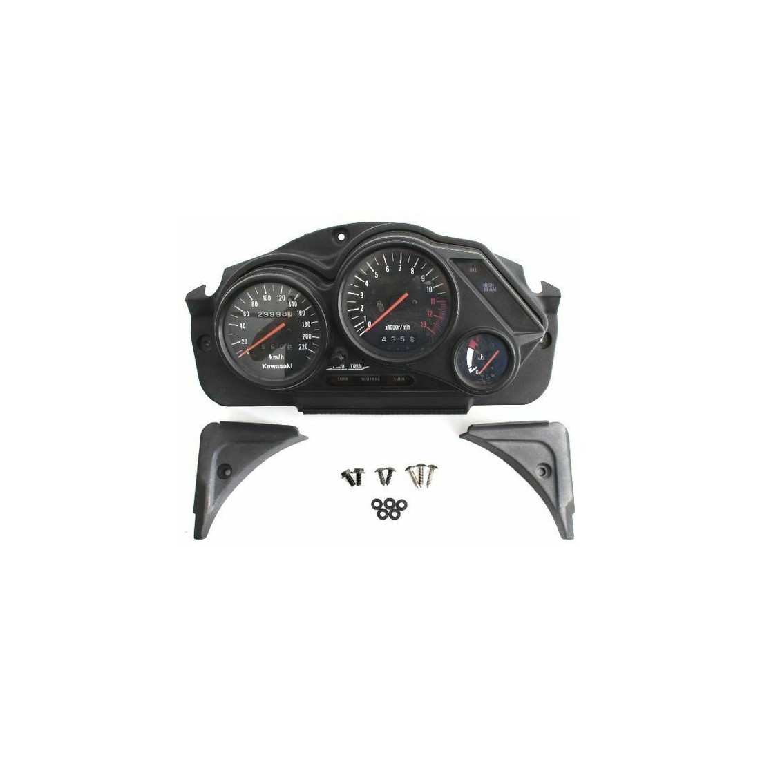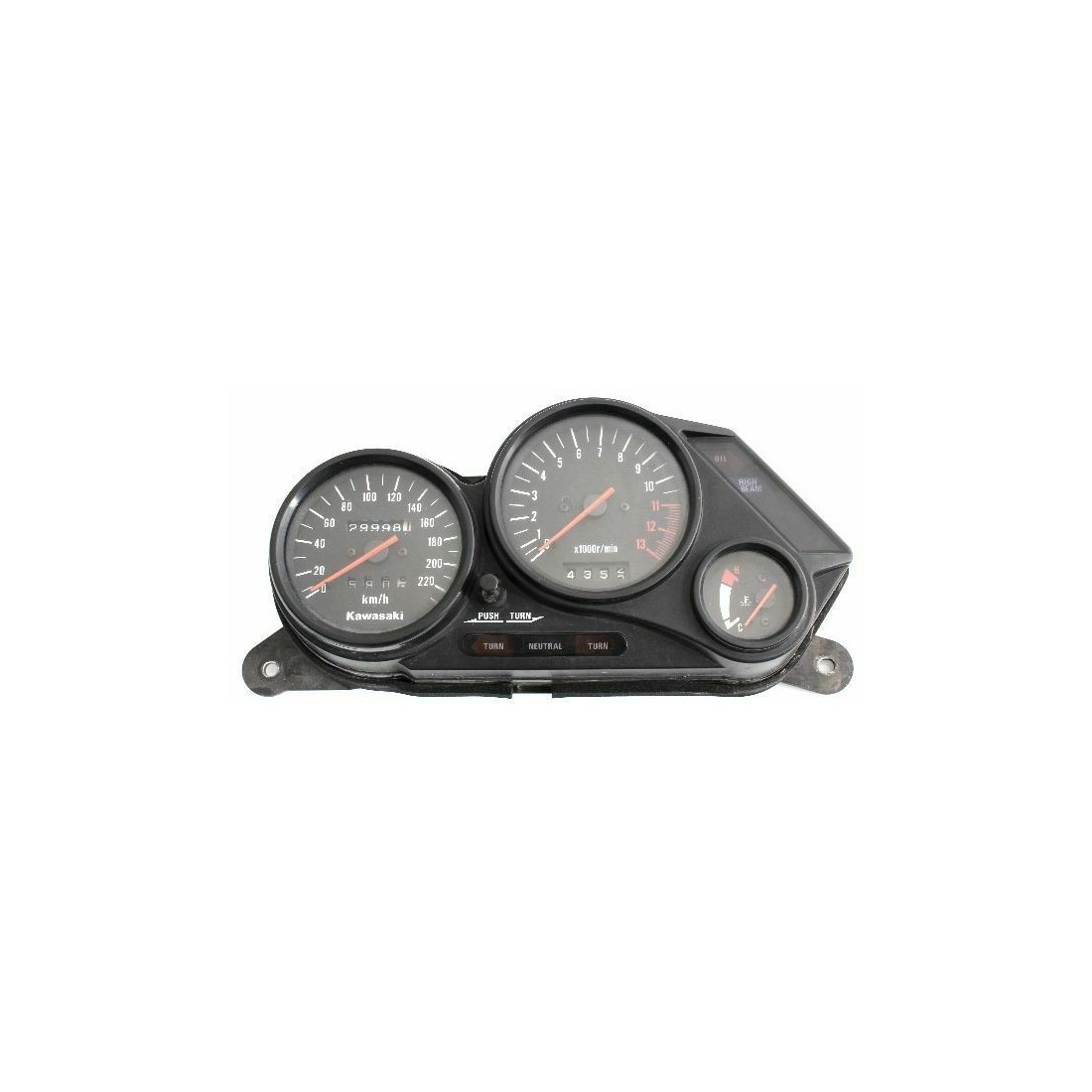 (R.9850) Vendo supporto con gruppo strumenti usato per Kawasaki GPZS 500 cc dal 1984 completo di contakilometri - contagiri - indicatore livello benzina , spie con azzeratore parziale