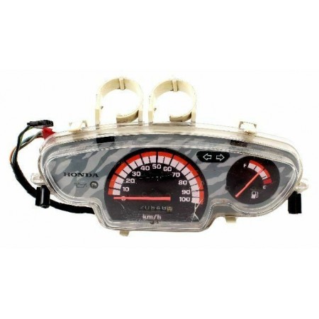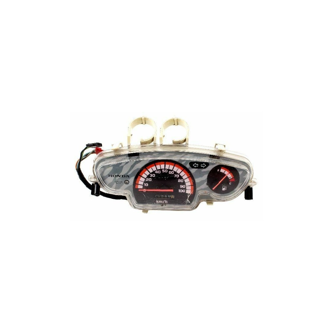 (R.6141) Vendo gruppo strumenti contakilometri usato funzionante per Honda SFX 50 cc. con scala da 0 a 100 km completo di indicatore livello benzina , i fili nella parte posteriore sono tagliati ma si possono montare quelli del contachilometri vecchio , per misure e scooter vedere foto