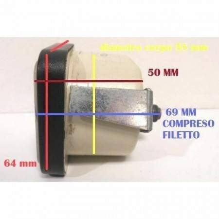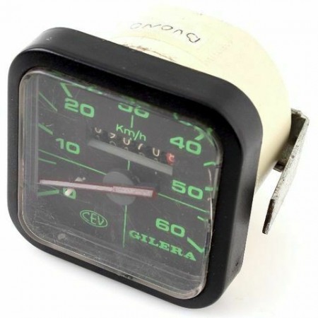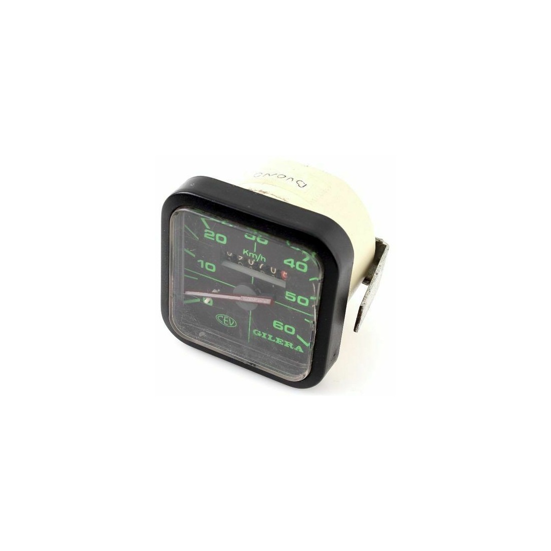 (R.1934) Vendo tachimetro quadrato usato funzionante per Gilera marca CEV scala 60 numeri colore verde con dimensione quadro mm. 64 x 64 e diametro corpo mm.58 con altezza mm. 50 e altezza compresa filetto mm. 69 con staffa di fissaggio , per misure vedere foto