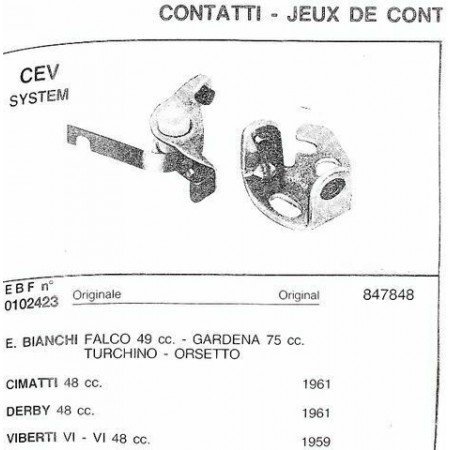 (R.10121) Vendo coppia puntine platinate nuove con codice Icet 3156 per impianto Cev per moto e scooter Bianchi Falco 49 cc - Gardena 75 cc - Turchino - Orsetto - Cimatti 48 cc - Derby 48 cc - Viberti Vivi 48 cc