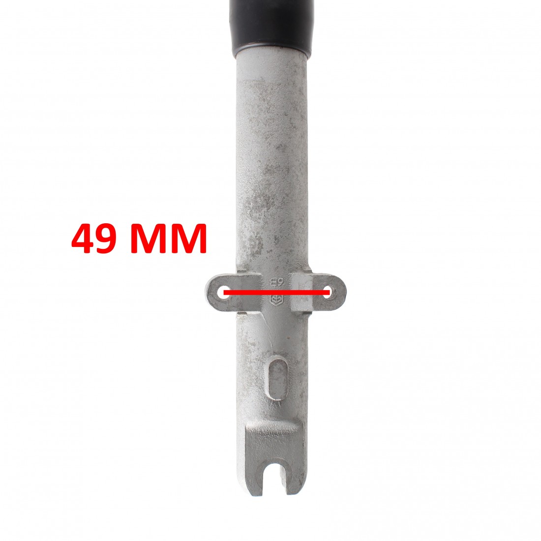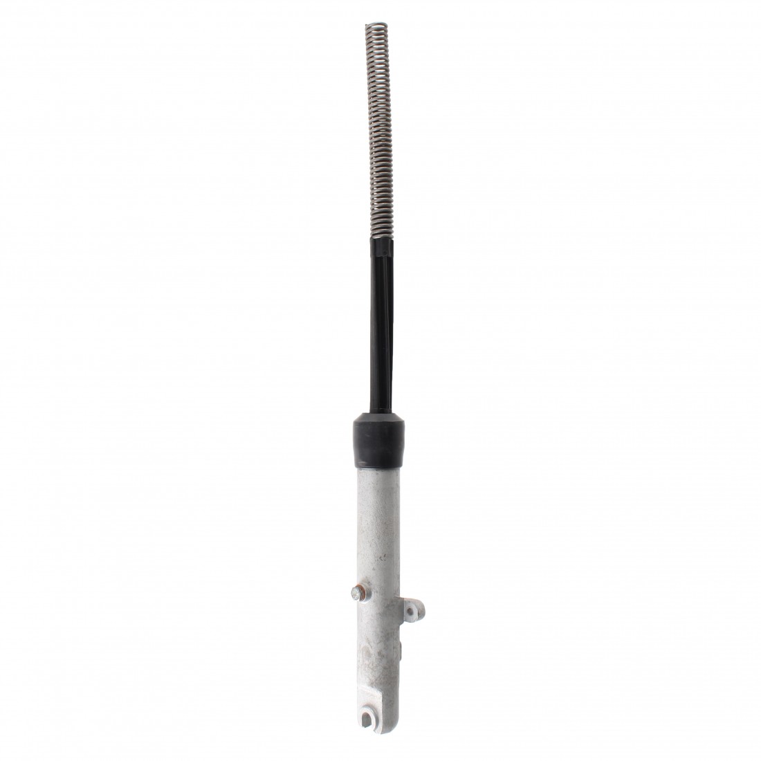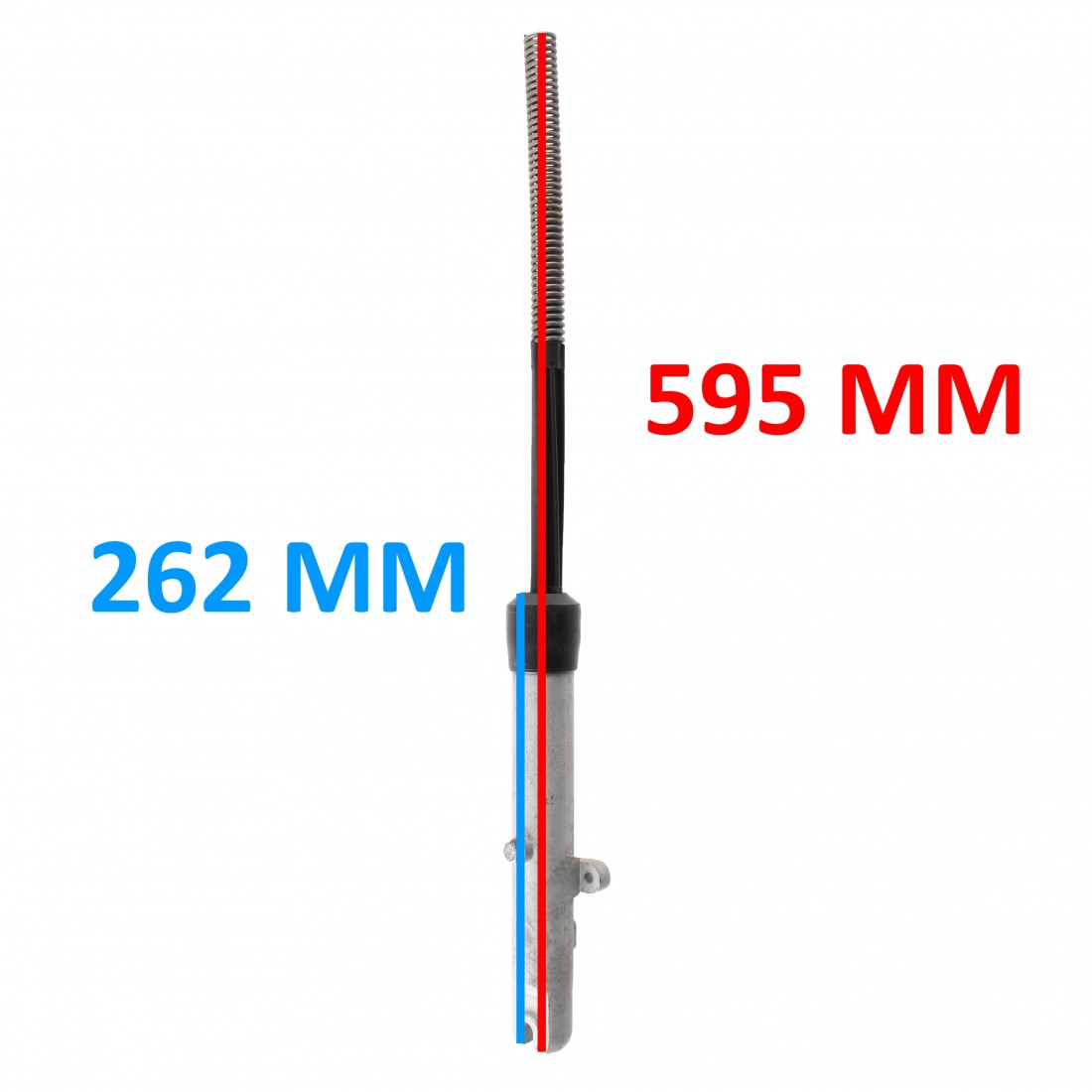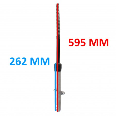 (R.13795) Vendo ammortizzatore anteriore lato destro usato sano per Piaggio Bravo prima serie originale epoca marchiato con logo Piaggio esagonale con lunghezza ammortizzatore 595 mm e lunghezza fodero 262 mm con interasse fori 49 mm , per misure vedere foto