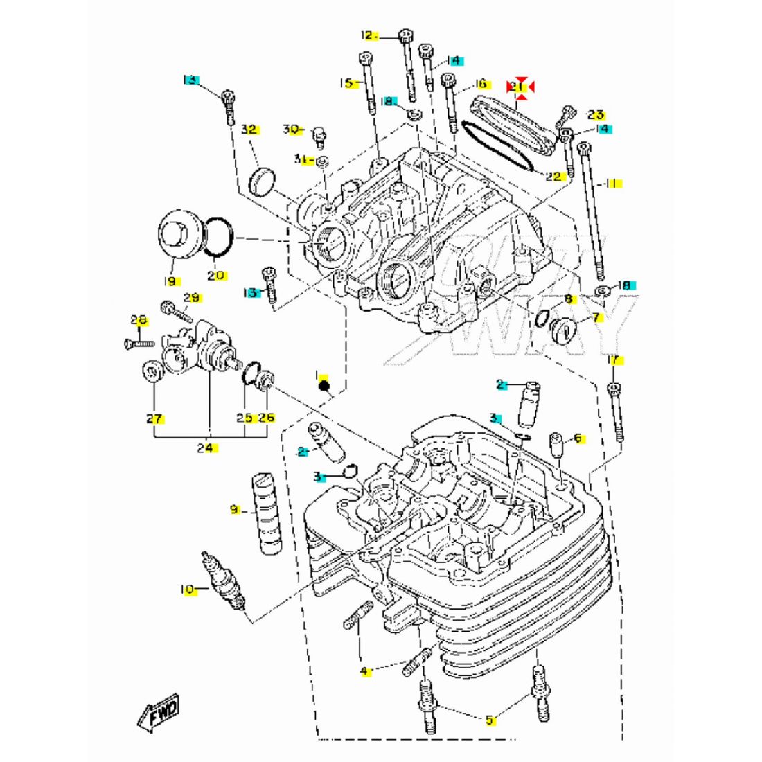 (R.21650) Vendo coperchio usato del registro valvole della testa cilindro per Yamaha XT 550 cc e 600 cc - XT Z Tenere 600 cc - SRX 600 cc- TT N 600 cc - XT E 600 cc - XT K 600 cc - TT K 600 cc - TT E 600 cc - TT R 600 cc - TT RE 600 cc - TT W 600 cc con codice Yamaha 5Y1111870000 , per applicazioni e spaccato vedere foto