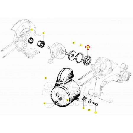 (R.15180) Vendo cuscinetto a sfera albero motore nuovo per Piaggio Vespa PX - PX E - PX T5 - PXE Arcobaleno dal 1981 - Vespa GS e Super Sport dal 1955 - Vespa Sprint - GR - Super - Rally dal 1965 - Cosa1 CL e CLX 125 - 150 - 200 cc dal 1988 - Cosa2 125 cc dal 1991 con codice Piaggio 097804 - 610199M - 059210 - 183464 marchiato SKF BB1-0855 BG 19 124N con diametro interno 25 mm e diametro esterno 62 mm con altezza 12 mm , per misure con applicazioni ed esploso vedere foto