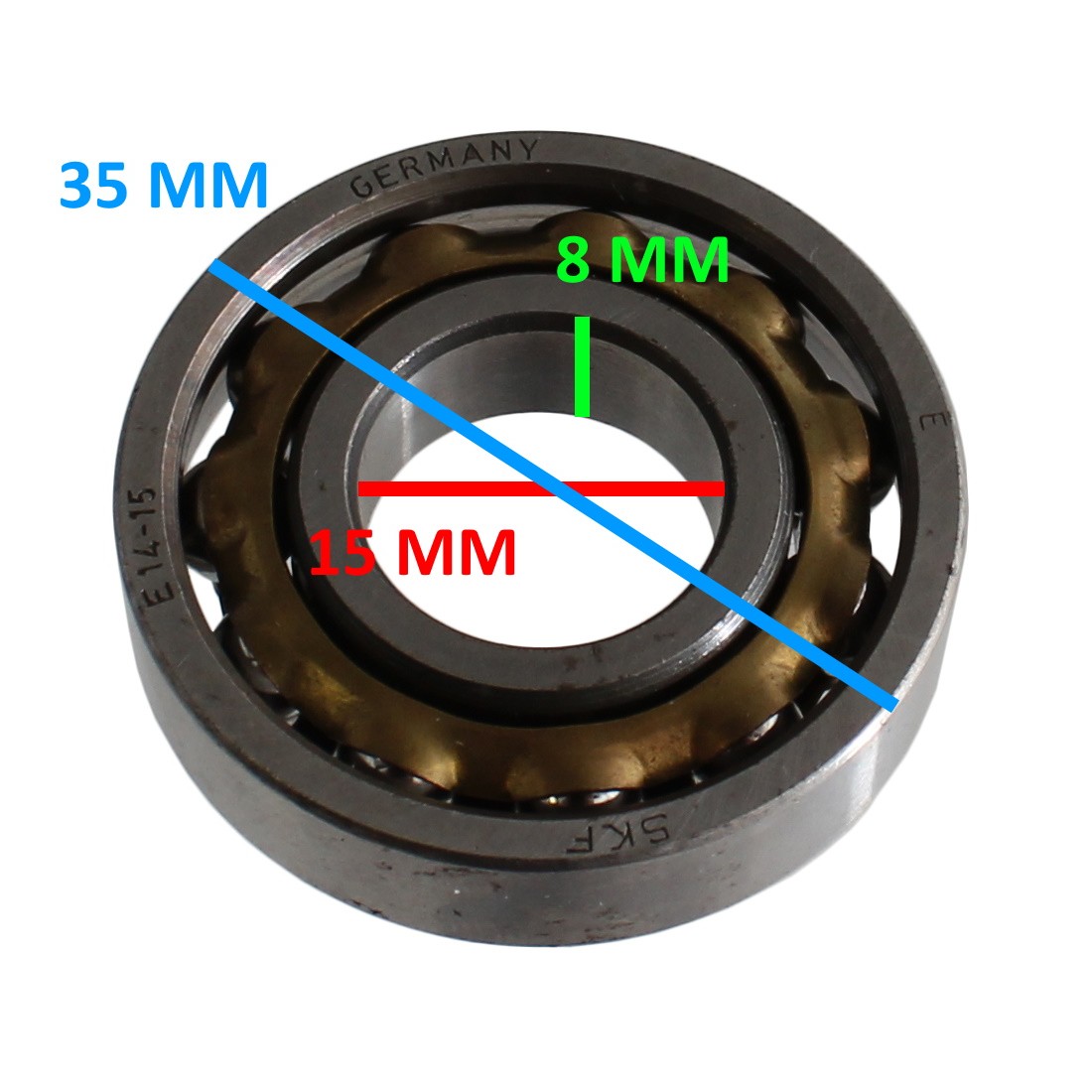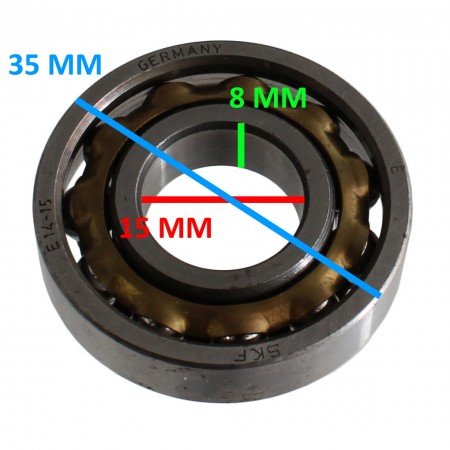 (R.13286) Vendo cuscinetto a singola corona di sfere con esterno sfilabile nuovo marchiato SKF con codice E15 o E 15 con diametro interno 15 mm e diametro esterno 35 mm con spessore 8 mm , per misure vedere foto