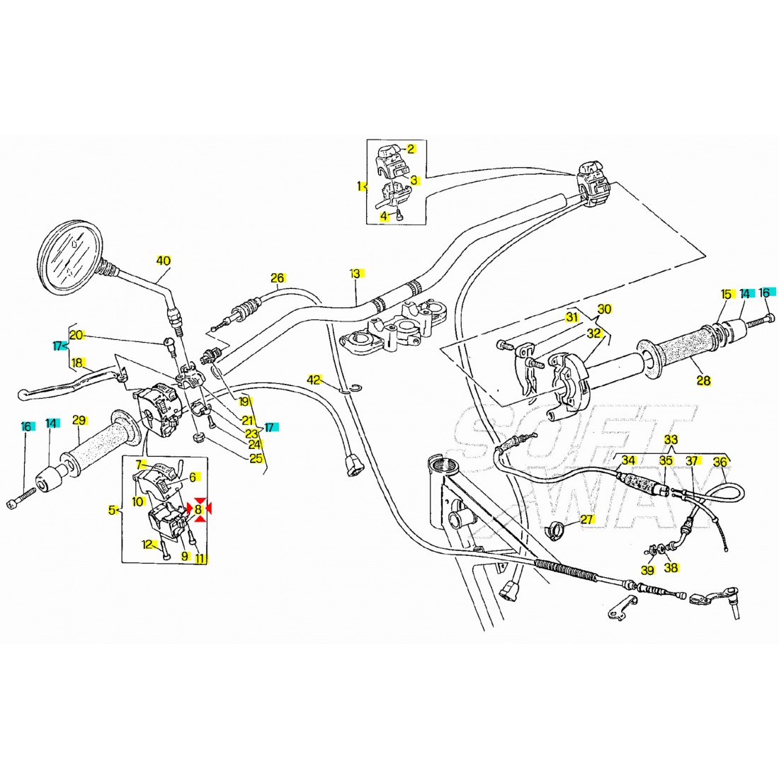 (R.16477) Vendo pulsante indicazione direzionale commutatore frecce nuovo di ricambio sul devio luci per Cagiva Supercity - W8 125c cc dal 1993 - W4 50 cc dal 1992 - W12 350 cc dal 1993 con codice 800050767 anche per Ducati Super Sport 750 epoca , per applicazioni ed esploso vedere foto