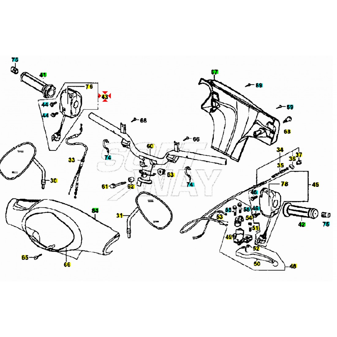(R.21047) Vendo commutatore luci destro usato per Kymco Agility ruota da 10 - Agility ruota da 12 - Agility ruota da 16 - Filly - People - People S - People S DD - Super 8 - Super 9 - Vitality - Yup - Yup EURO2 da 50 e 125 cc con codice Kymco 00152640 , per applicazioni e spaccato vedere foto
