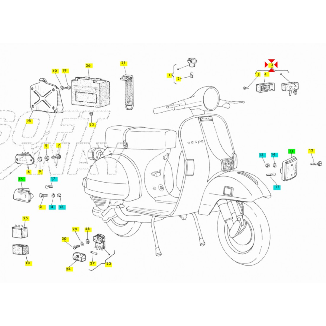 (R.21153) Vendo deviatore frecce nuovo per Piaggio Vespa PX 125 e 200 cc prima serie con levetta sotto fino al 1981 simile a codice Piaggio 163132 , per applicazioni e spaccato vedere foto