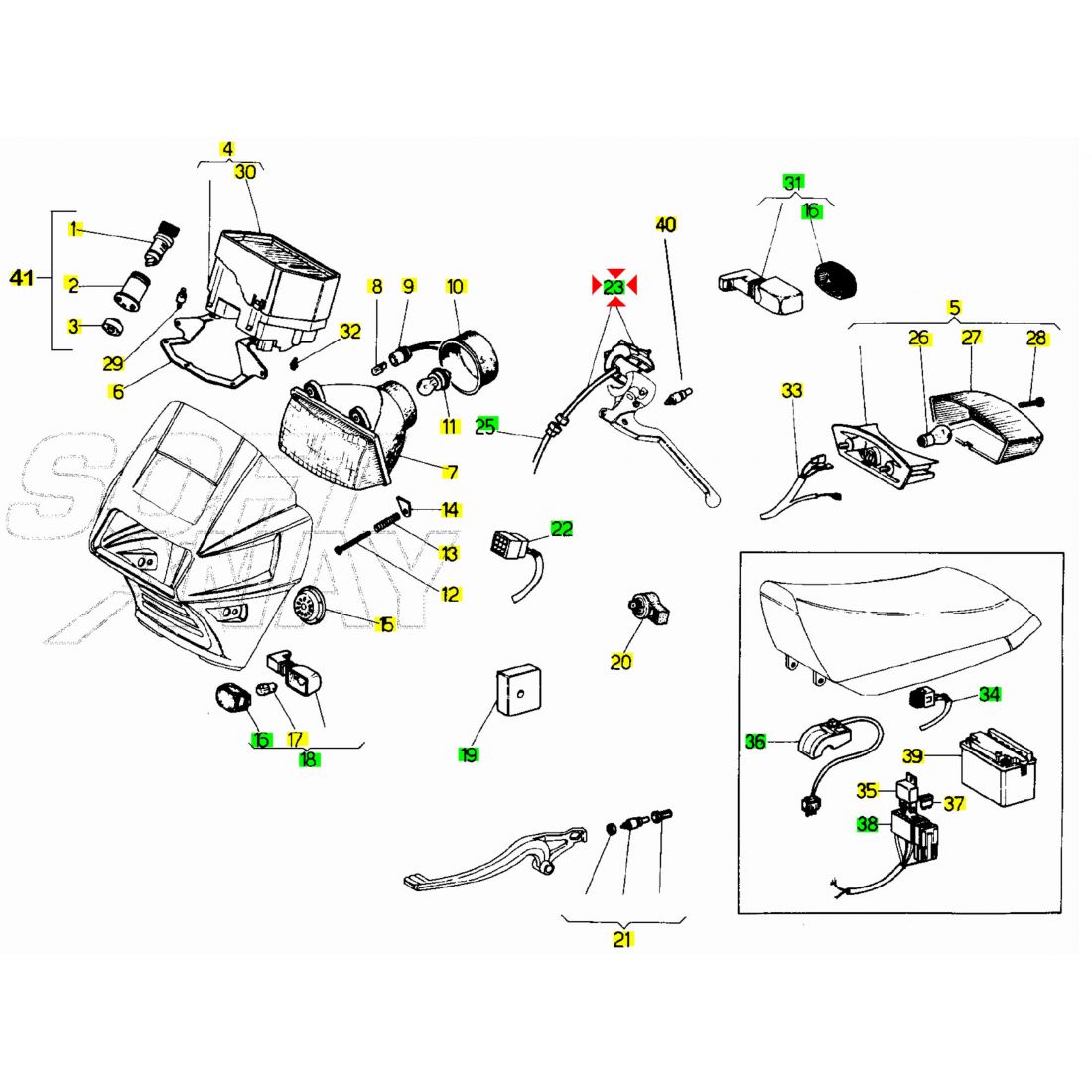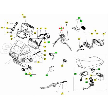 (R.23360) Vendo commutatore luci nuovo per Malaguti Fifty Evolution dal 1990 - Fifty Full CX dal 1989 - Fifty Top con miscelatore dal 1990 originale Malaguti con codice 01713500 e con attacco a 8 pin , per applicazioni e spaccato vedere foto