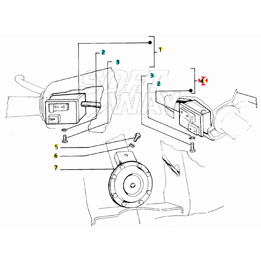 (R.23437) Vendo commutatore luci destro con accensione nuovo versione 8 fili alla base per Piaggio Vespa FL dal 1990 - Vespa FL2 HP e Automatica 1990 con attacchi a 5 e a 2 pin con codice Piaggio 291872 o ex 290414 , per applicazioni e spaccato vedere foto