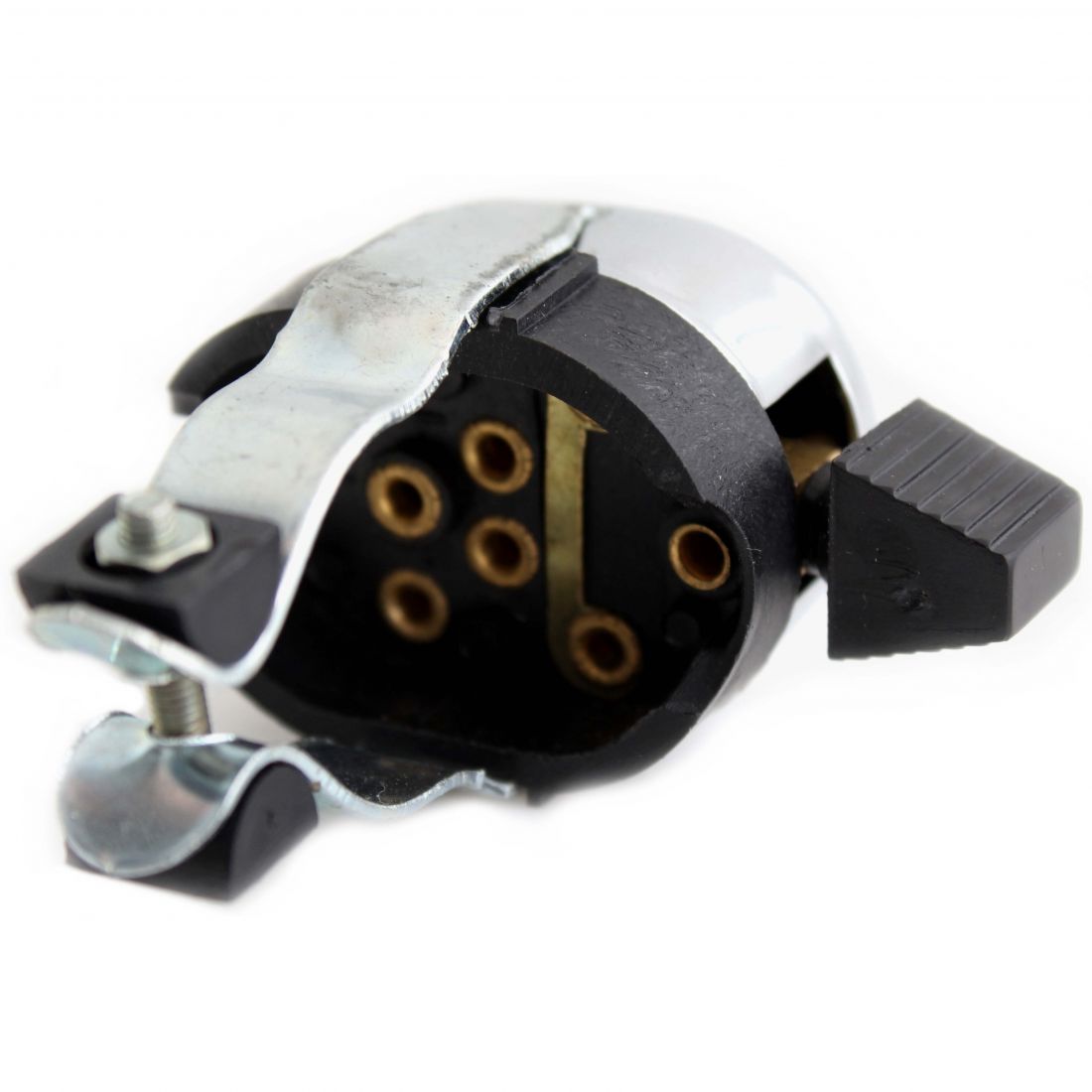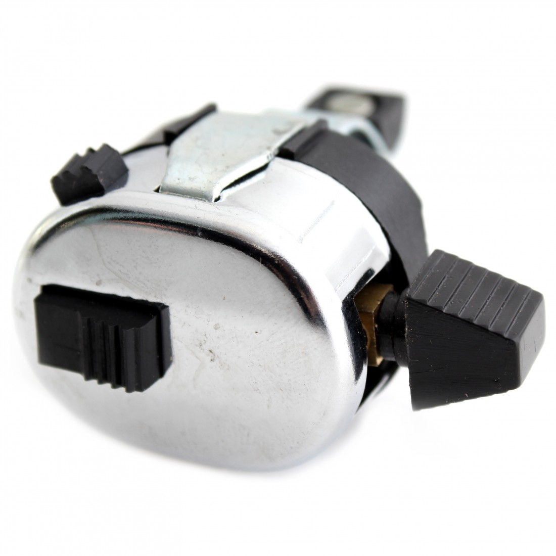 (R.8918) Vendo commutatore fari a tre scatti nuovo con pulsate clacson e pulsante spegnimento per ciclomotori vari vintage con coperchio in ferro cromato e fondo in plastica nera , il prezzo si intende per singolo pezzo