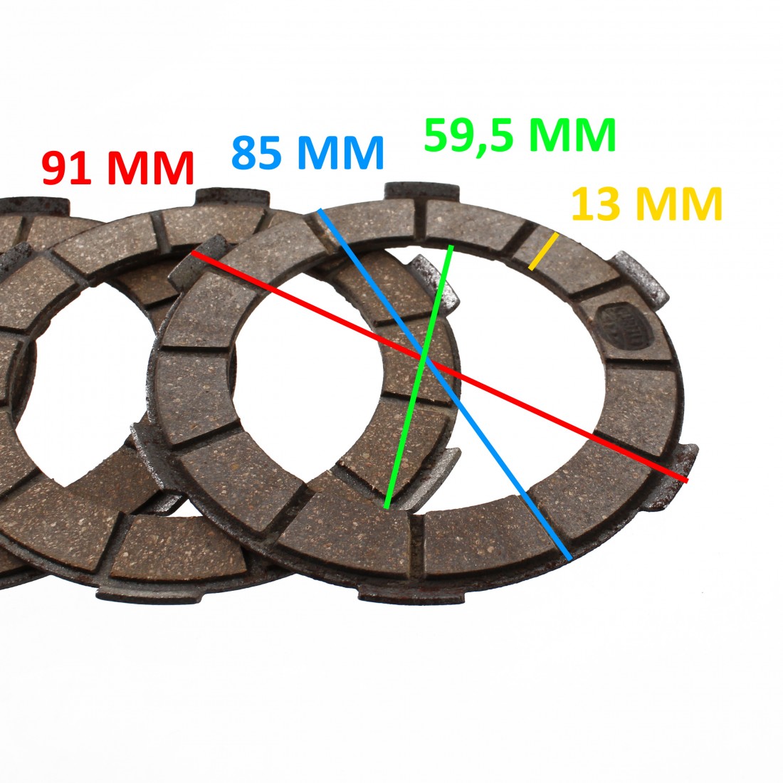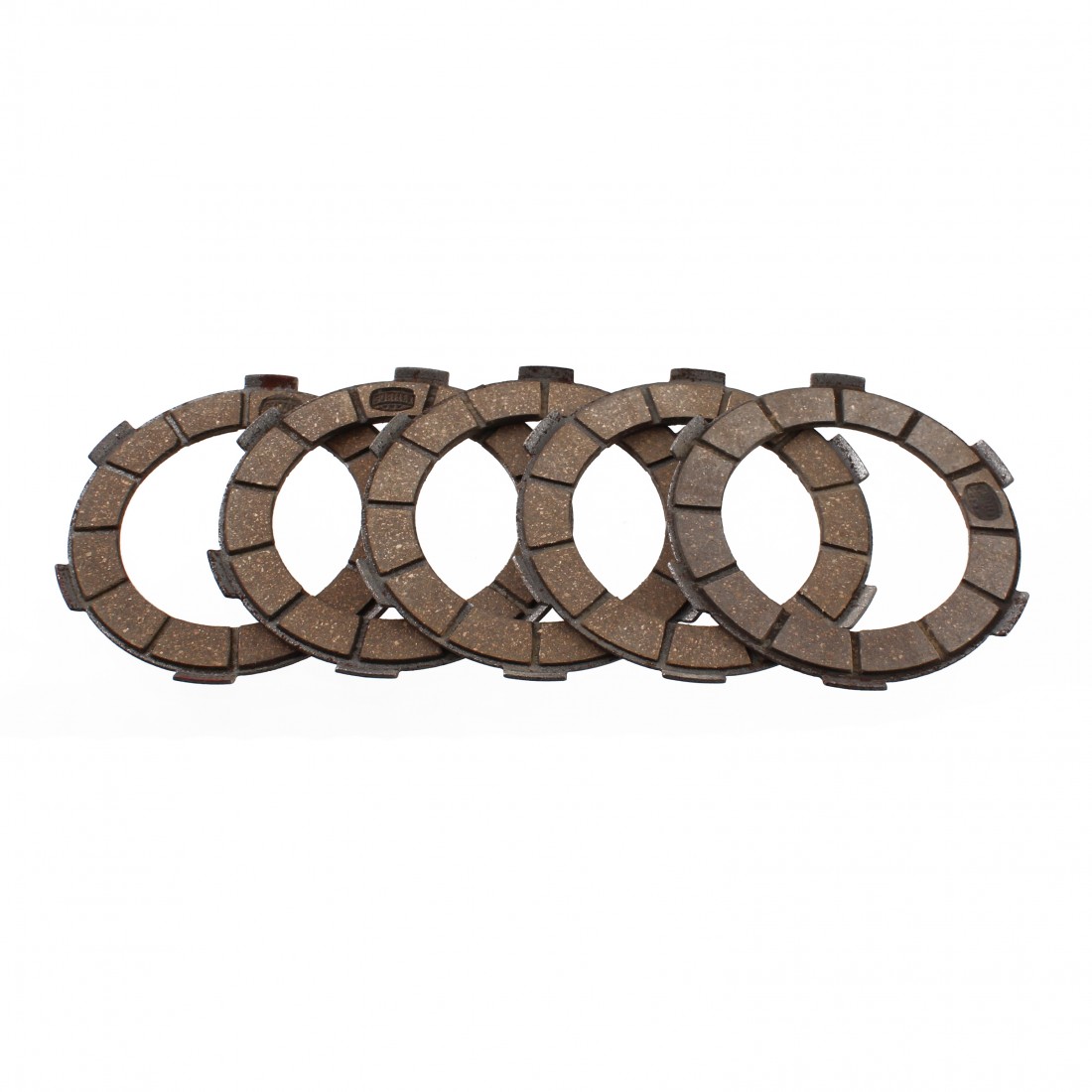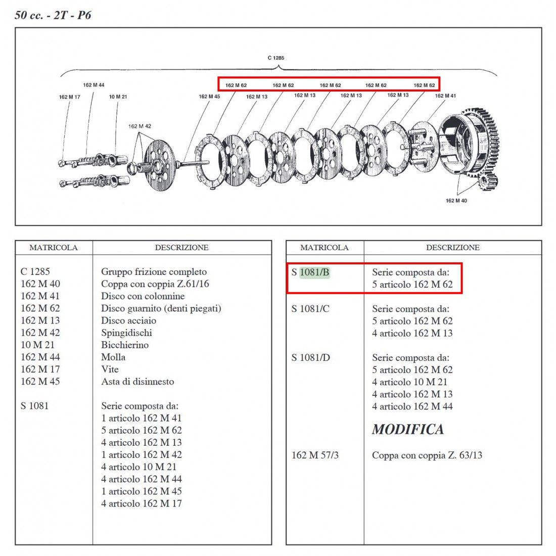 (R.16085) Vendo serie dischi frizione nuovi per motori Minarelli P 6 a sei tacche con codice del kit S1081/B e codice del singolo disco 162 M 62 composta da 5 dischi guarniti in sughero , il prezzo si intende per l'intero kit , per misure ed esploso vedere foto