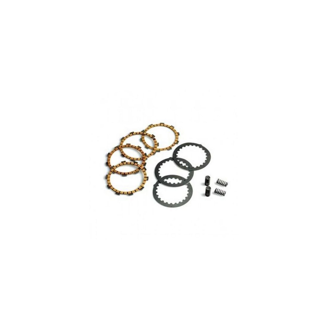 (R.24033) Vendo serie di dischi frizione racing nuova per motori Minarelli AM6 in cellulosa e kevlar completa con dischi guarniti , dischi in ferro e di 4 molle , marca Top Motoparts TPR con codice 9921180