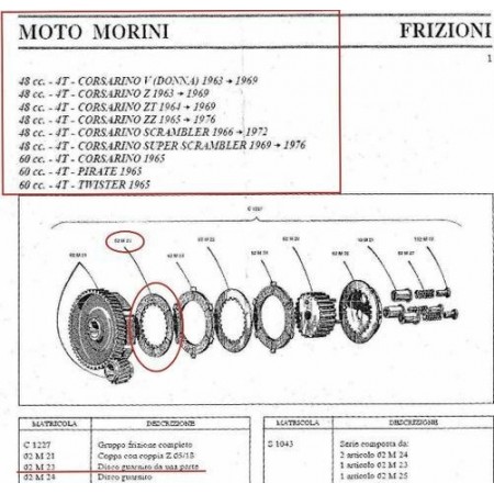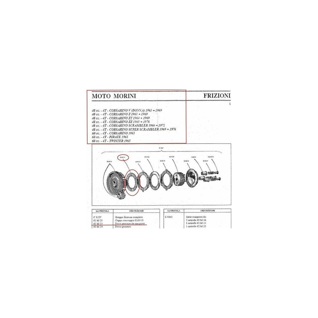 (R.5173) Vendo disco guarnito nuovo per Moto morini Corsarino V 1963 / 1969 48 cc 4 tempi - Corsarino Z 1963 - 1969 48 cc 4 tempi - Corsarino ZT 1964 - 1969 48 cc 4 tempi - Corsarino ZZ 1965 / 1976 48 cc 4 tempi - Corsarino Super Scrambler 1969 - 1976 48 cc 4 tempi - Corsarino 1965 60 cc 4 tempi - Pirate 1965 60 cc 4 tempi - Twister 1965 60 cc 4 tempi , solo questo disponibile della serie , per misure e applicazioni vedere foto