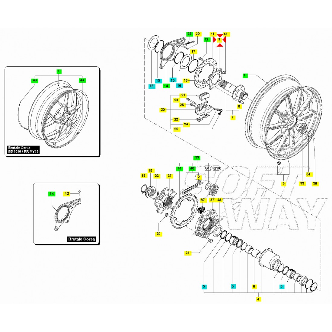 (R.15469) Vendo flangia di supporto disco freno posteriore nuova per MV Agusta Brutale vari modelli tipo Dragster Rosso - RR - SCS - RC SCS 800 cc dal 2021 - F3 675 - Or- 800 Ago - RC 675 cc dal 2012 - F3 Rosso - F3RR 800 cc dal 2021 - F4 vari modelli - Rivale - RVS - Stradale Superveloce 800 - Alpine - Ago - Oro - 75 - Turismo Veloce - Lusso - RC - SCS 800 cc dal 2014 con codice 800084890 marchiato CRC 84890 con interasse fori esterno di 88 mm e interasse fori interno di 60 mm , per misure applicazioni ed esploso vedere foto