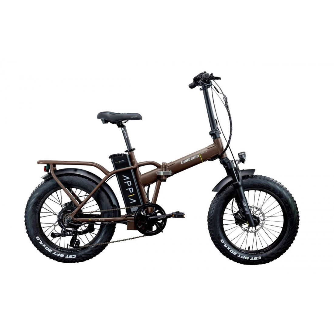 (R.19536) Vendo fat bike elettrica pieghevole nuova Lombardo Appia Agevole con ruote da 20" e motore BAFANG G060 Rear Hub Motor 48v 250w 80Nm Torque con batteria da 48v - 13 ah / 468 Wh e cambio Shimano a 7 velocità con freno idraulico a disco . La bicicletta è montata e registrata non in scatola , disponibile in taglia unica 44 e nei colori Nero opaco - Marrone caffè - Verde 6026 - Grigio chiaro