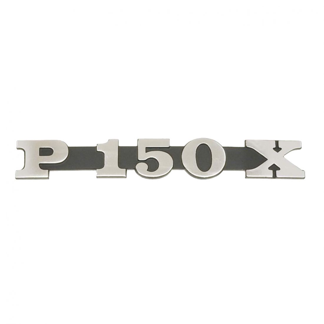 (R.22216) Vendo targhetta in alluminio del cofano laterale nuova con scritta "P 150 X " per Piaggio Vespa PX 150 cc dal 1978 simile a codice Piaggio 182117