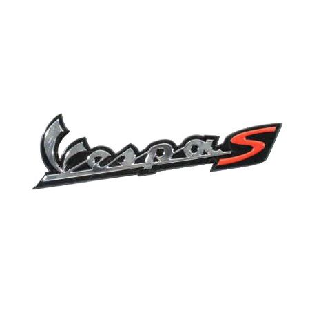 (R.22491) Vendo stemma resinato adesivo posteriore nuovo per scooter Piaggio Vespa S 50 , 125 e 250 dal 2007 con codice Piaggio 673278 di colore argento e rosso su sfondo nero , per applicazioni e spaccato vedere foto